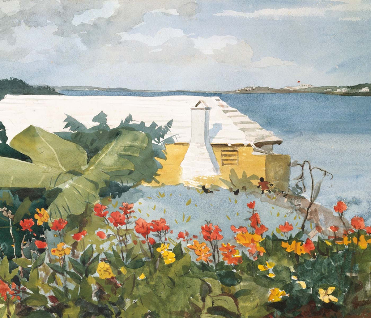 Pierre Jean Apol · 1912 · Sunlit tropical market art print with bustling figures and vivid street color