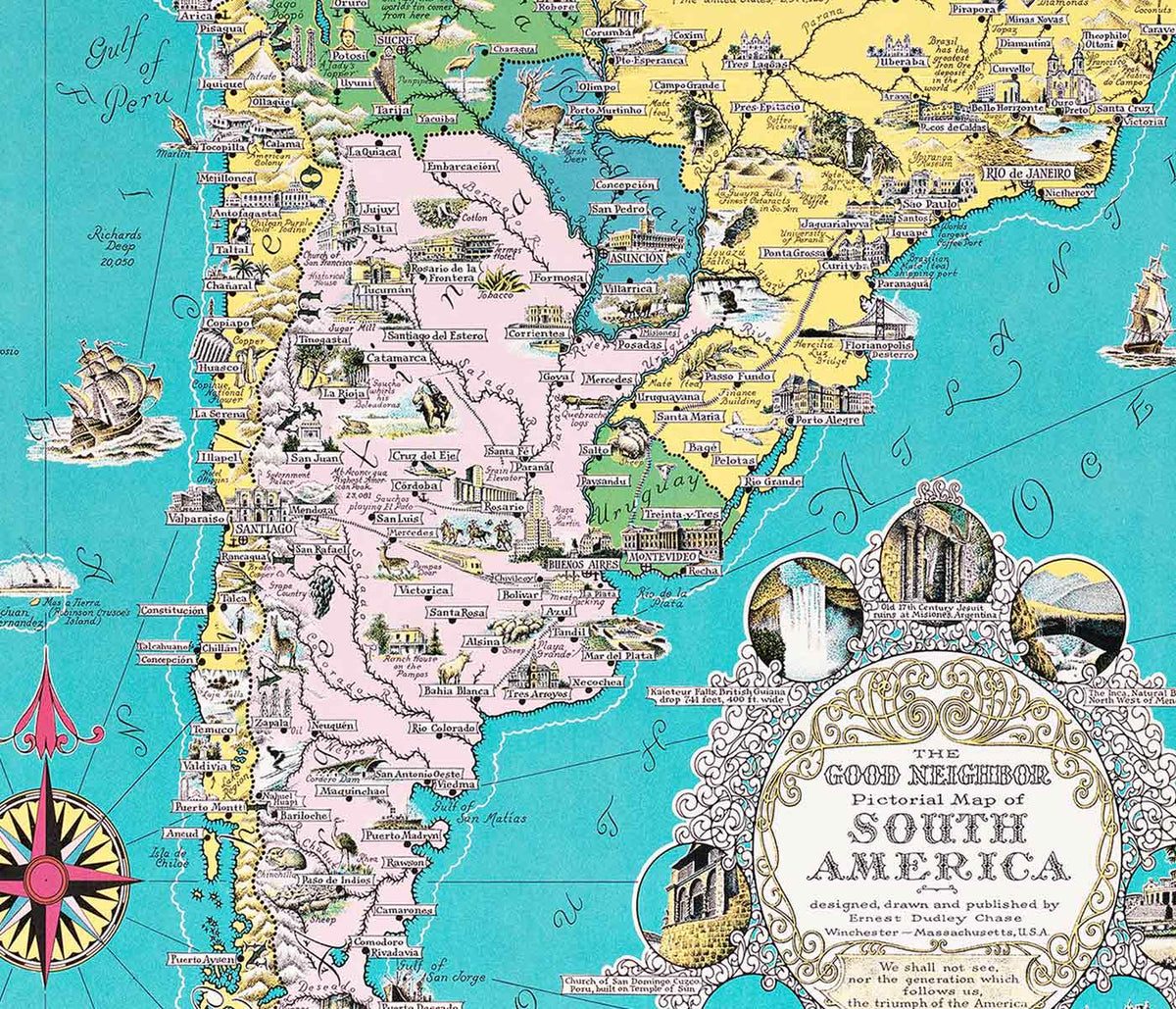 Rand McNally & Co · 1940 · Detailed Western Hemisphere map poster with crisp grids and classic nautical blue seas
