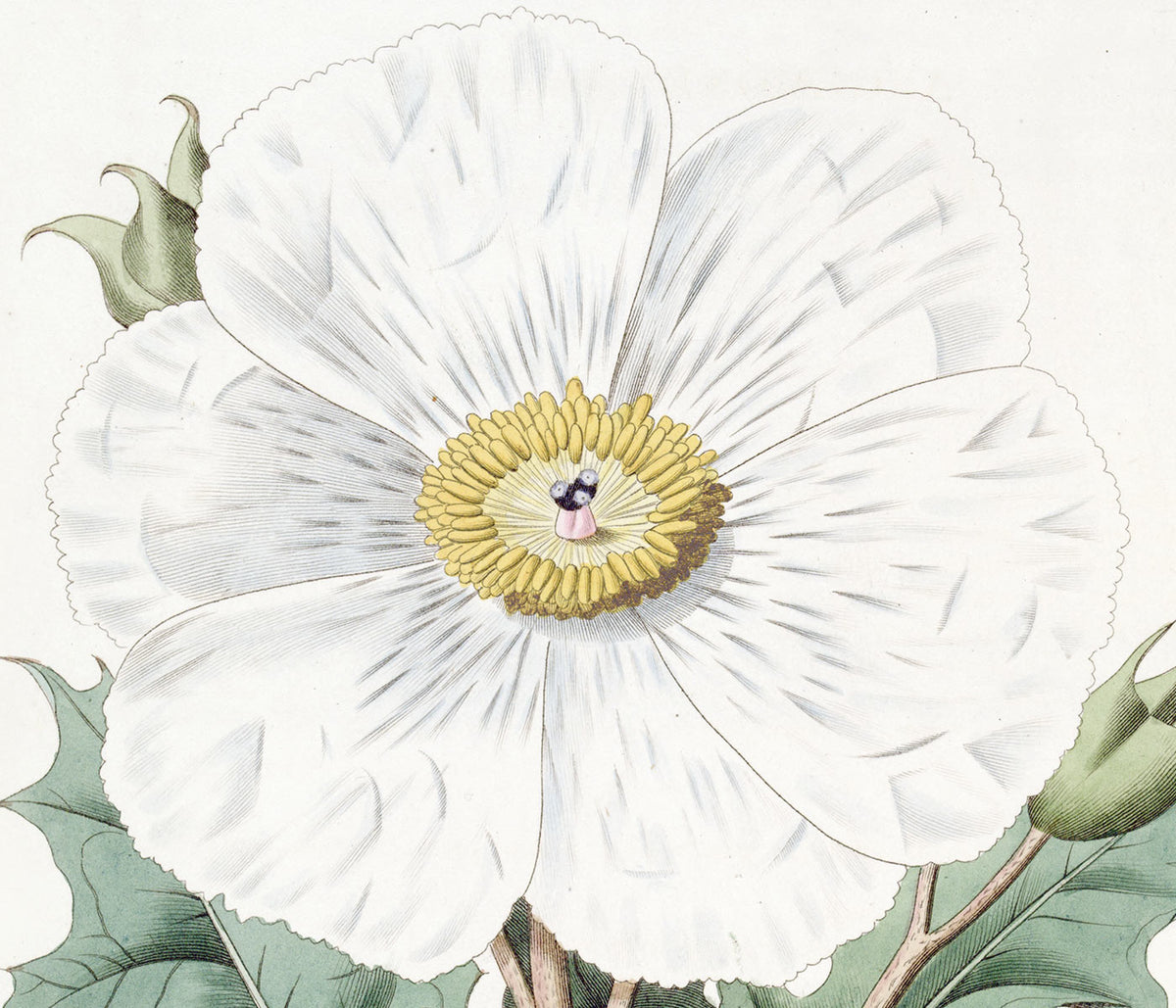 • Botanical and citrus fruits, local and exotic flowers, technical sketches, tropical jungles, butterflies, and vibrant landscapes illustrated in a garden of Eden style with lithographs, engravings, and paintings.